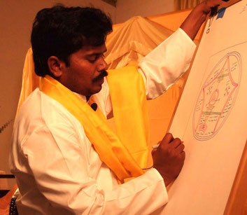 "Das Sri Chakra ist der höchste Magnet für Reichtum, Namen und Ruhm und die Erfüllung aller Wünsche. Wenn du das Sri Chakra einmal siehst, wird dir die Energie des Sri Chakras das alles geben. " - Sri Kaleshwar